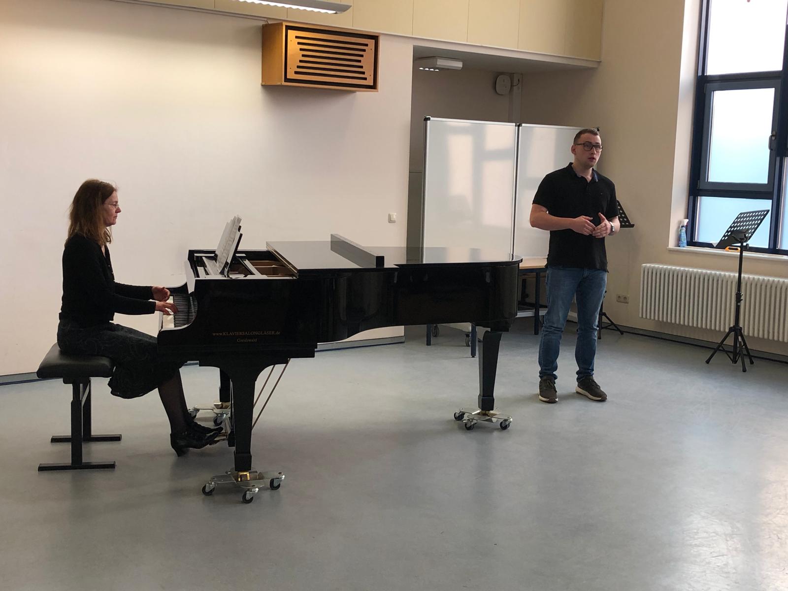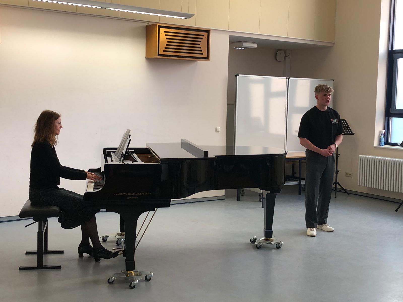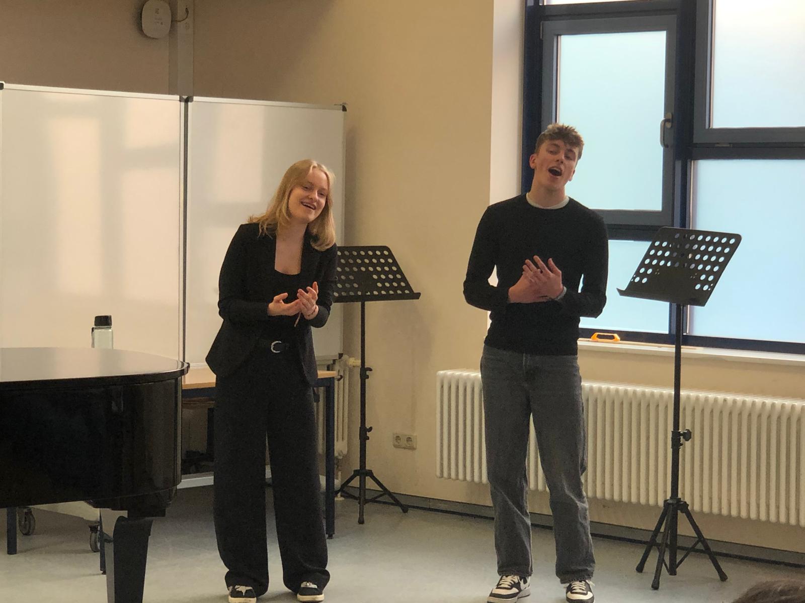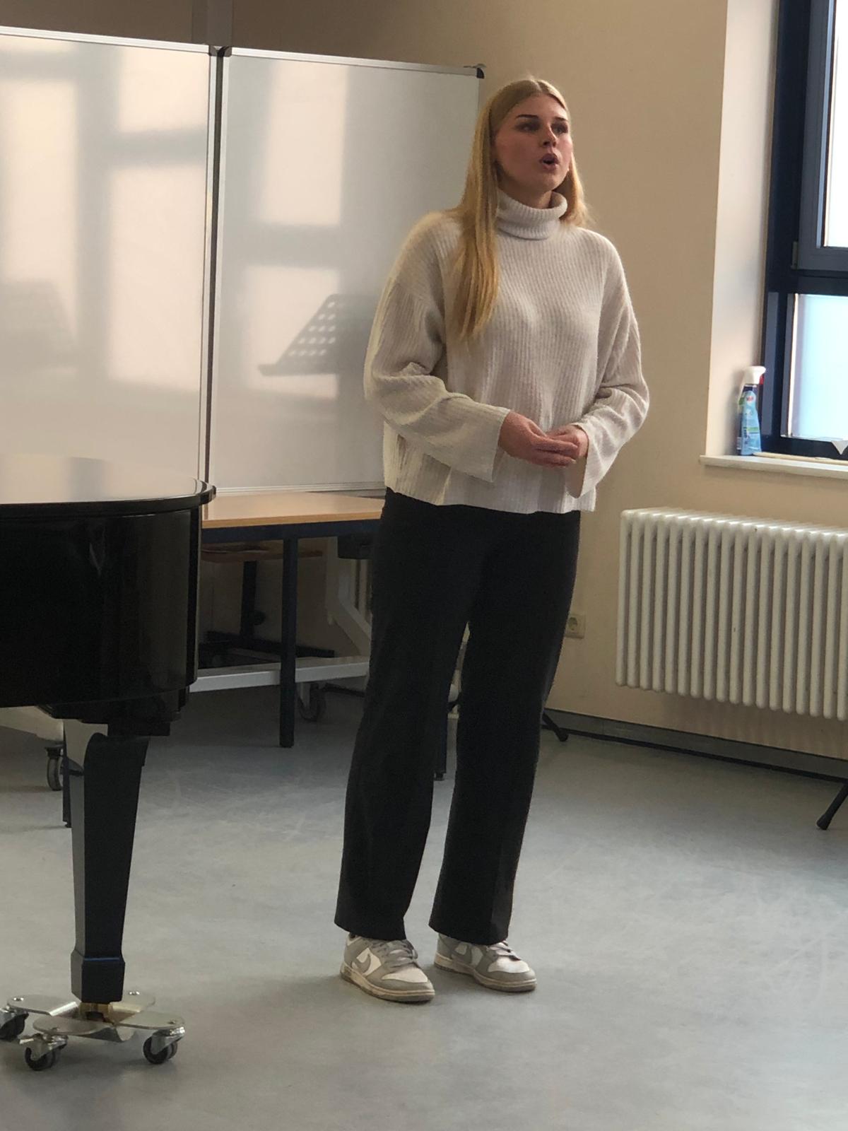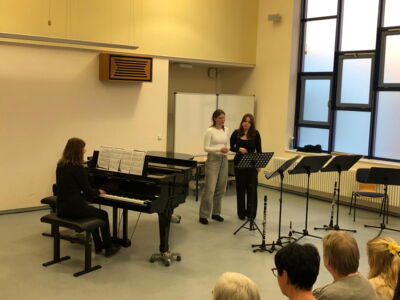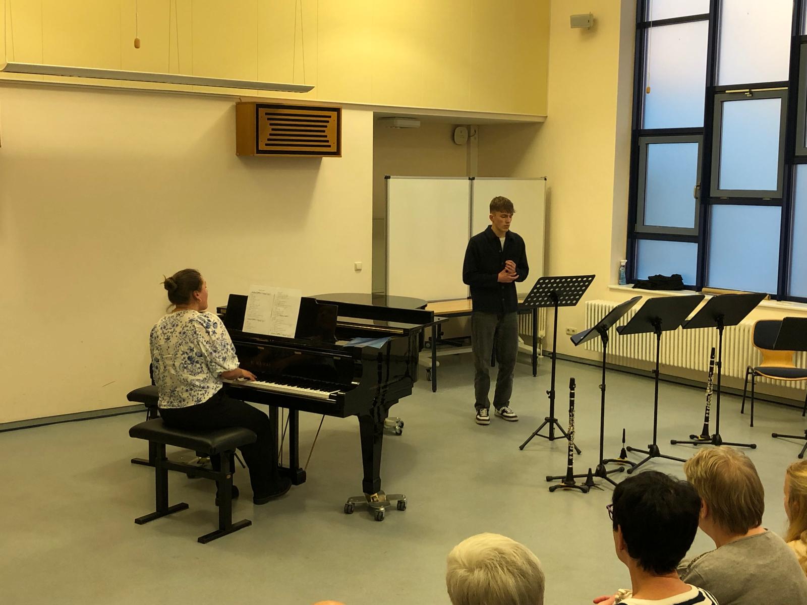 Im Beisein ihrer Lehrer aber auch einiger Eltern und Freunde präsentierten sich die Schülerinnen und Schüler des Leistungskurses Musik in einem kleinen Konzert. Die jungen Künstlerinnen und Künstler zeigten ihr Können in dem von ihnen gewählten instrumentalen oder vokalen Hauptfach. So wechselten Beiträge am Klavier mit verschiedenen Gesangsdarbietungen unterschiedlicher Epochen und Stile. Wir danken unseren 12ern für das schöne Konzert, den Klavierlehrerinnen und Begleiterinnen Frau Vogler und Frau Hauser, sowie den Gesangslehrerinnen Frau Gnau, Frau Martensmeier und Frau Schlundt, für die gute Vorbereitung.